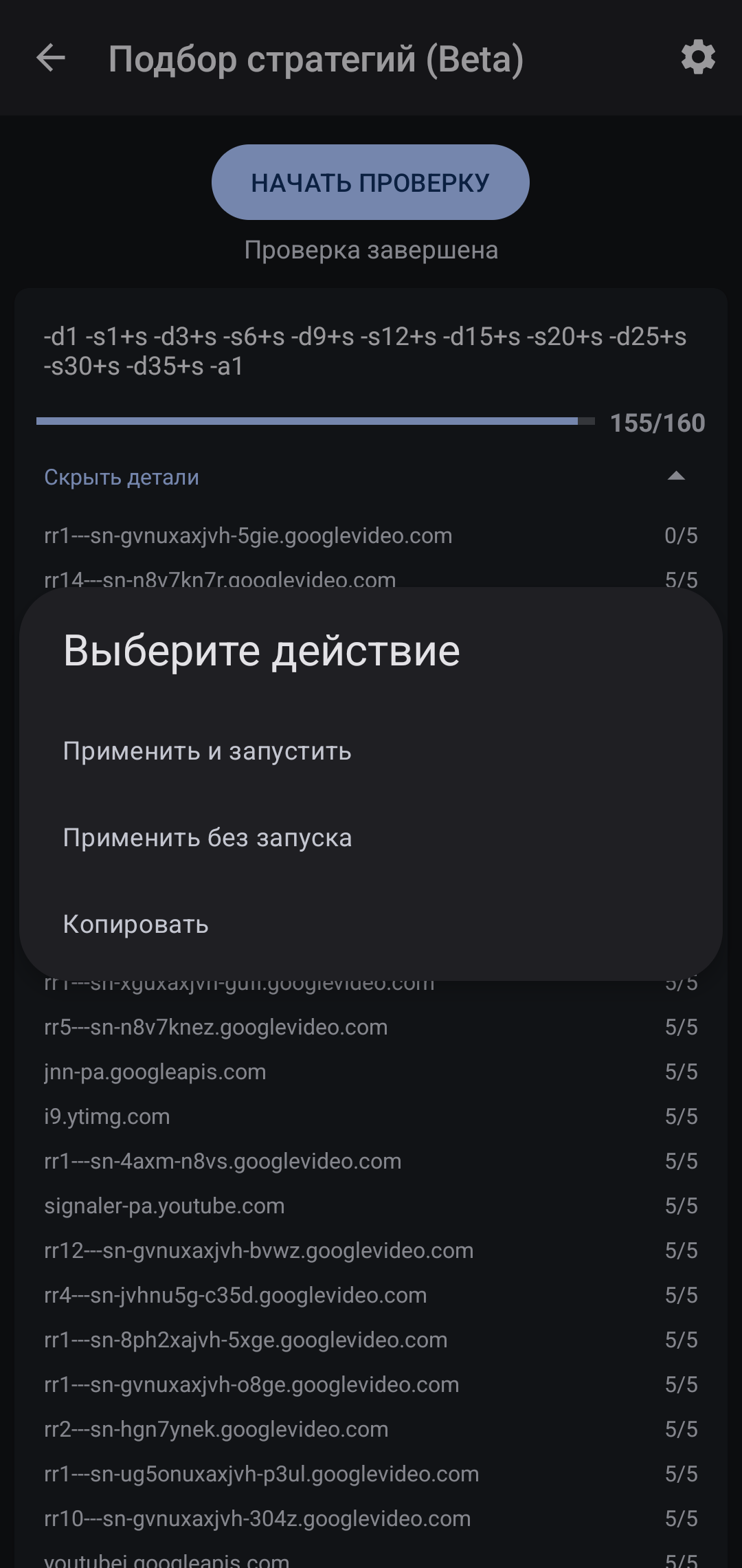 Проверка завершена. Стратегии сортируются по количеству ответивших доменов автоматически. Вылетает подбор - решение здесь.