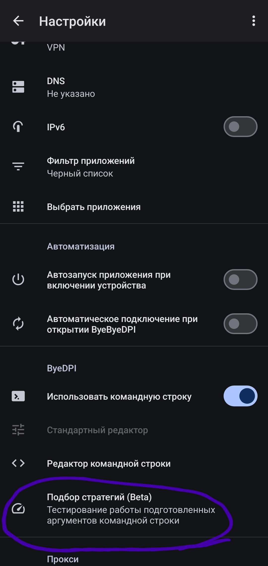 Для эффективной работы ByeByeDPI требуется правильная настройка: