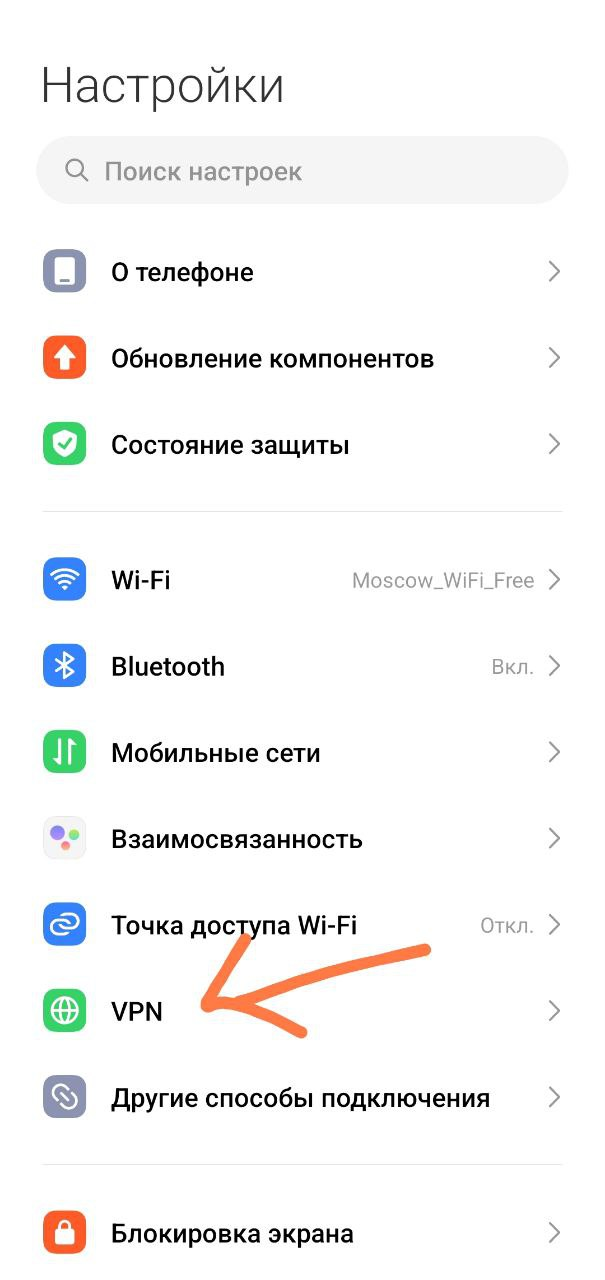 Перейдите в настройки устройства -> “Подключения” -> “VPN”