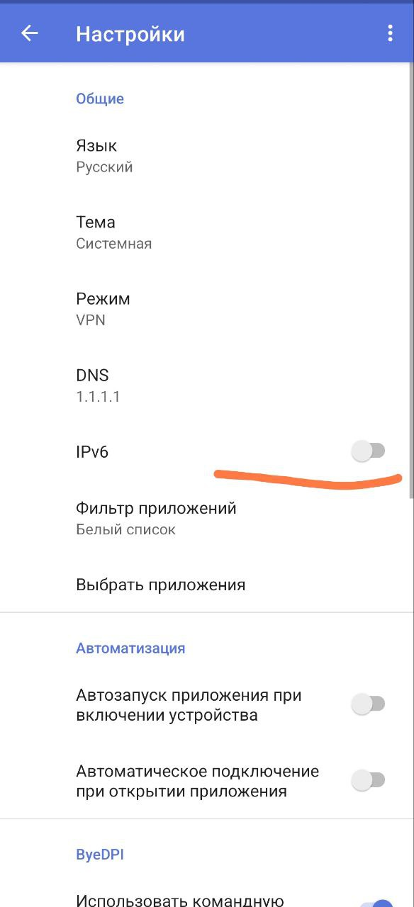 Самопроизвольное отключение ByeByeDPI