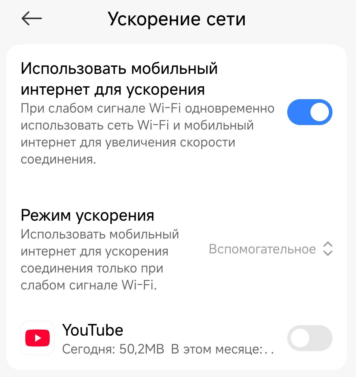 Попробуйте отключить ускорение сети в настройках Wi-Fi: