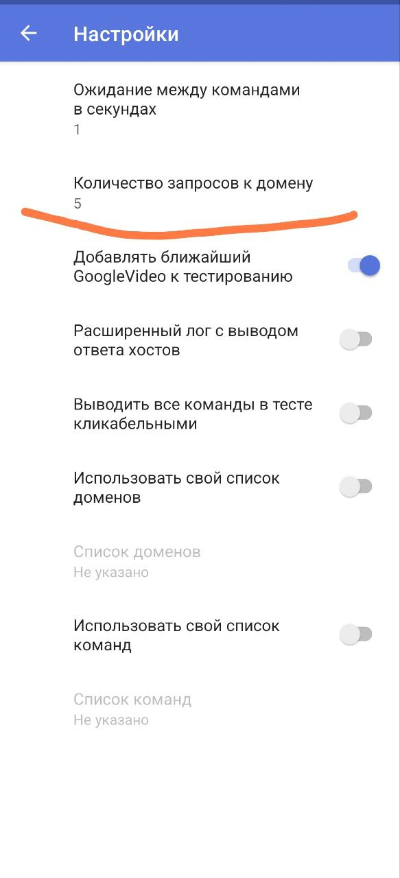 Измените Количество запросов к домену на 5
