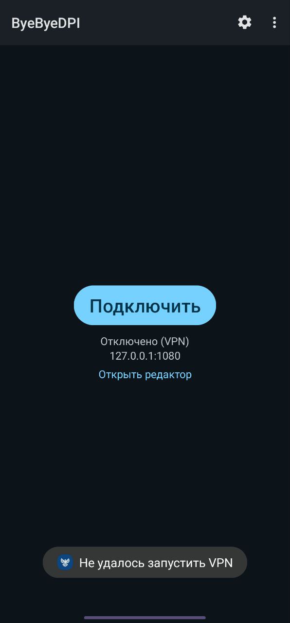 Проблема в том, что ByeDPI выдал ошибку.