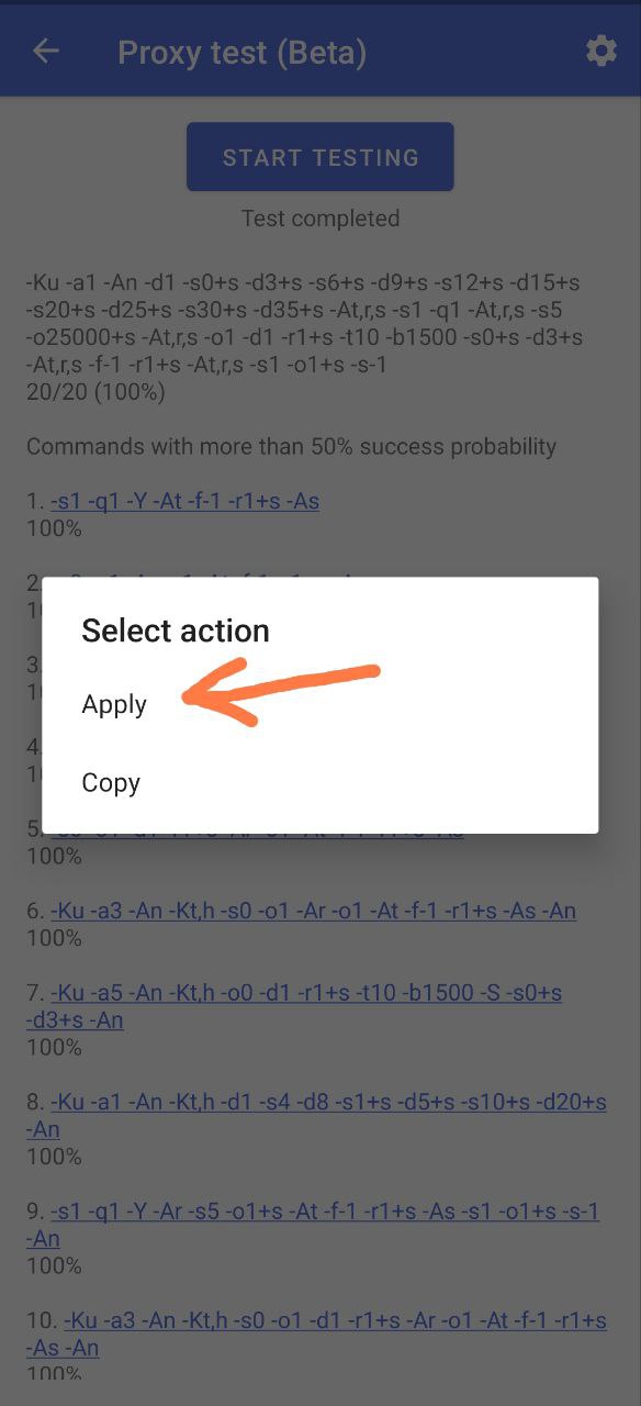 If there are any issues with the operation of the desired application: go to Proxy test (Beta)