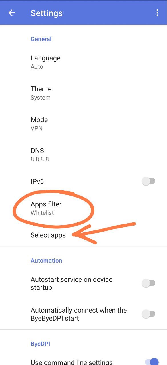 Since ByeByeDPI operates differently from VPNs, the application requires some configuration.