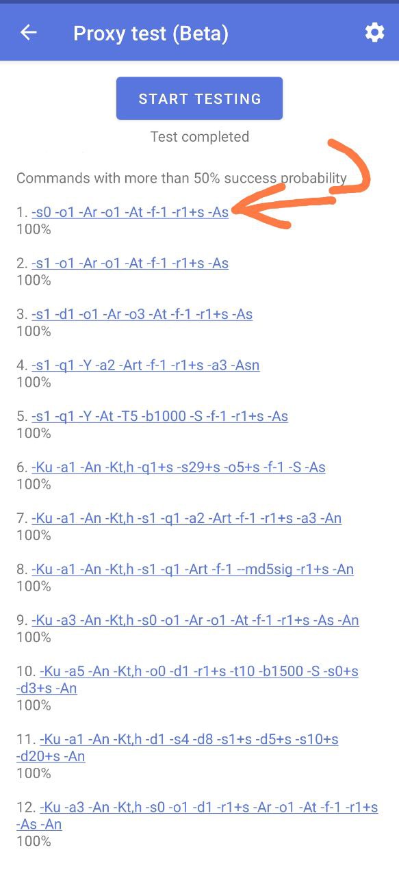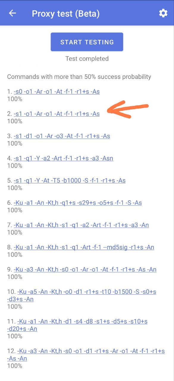The percentages shown in the strategy test are not a direct indicator of performance; they reflect the number of successful responses from domains. You can enable their display in the test settings. Even if a strategy doesn’t show 100% success, it may still work (e.g., 30% success). Therefore, it’s worth testing strategies one by one, starting from the highest percentage. ↩︎